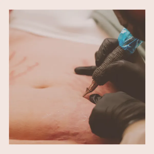 Our Inkless Scar and Stretch Mark Revision treatments are designed to restore smoothness and even texture to your skin - without the use of pigment. Using a blend of medical-grade serums and advanced tattooing techniques, this process stimulates your body's natural healing response, boosting collagen and elastin production. Over time, the treated areas soften, fade, and blend beautifully with your natural skin. It's a safe, effective way to reclaim confidence in your skin's natural appearance.